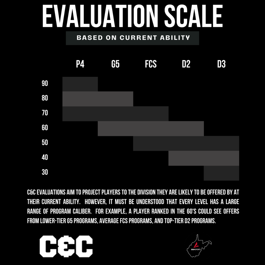 Players that excel at less competitive positions will be ranked within those groups to maximize player recognition. Our college scout sheet reflects all of a player’s positions, however.