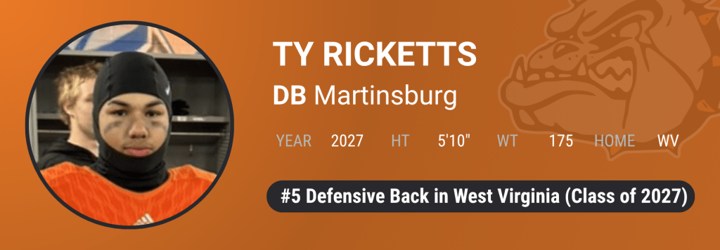 Martinsburg’s Ty Ricketts (5’10”, 175) has been a steady, reliable presence in one of the state’s top programs, contributing in multiple roles over several seasons. He handles coverage responsibilities well from outside the box while also being highly effective against the run.